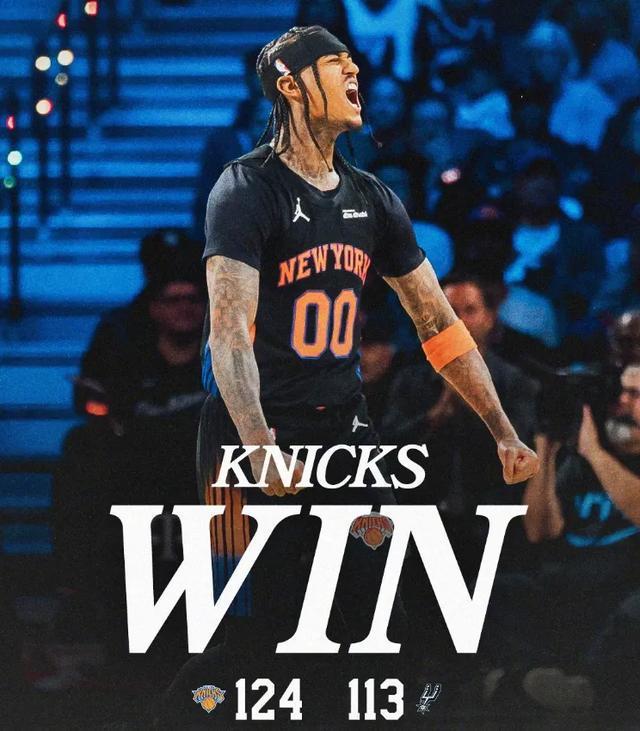尼克斯逆转的号角,是克拉克森在第四节之初吹响的,他连续命中两记三分,米罗抢下的前场篮板,让尼克斯从落后到反超。在这之后,马刺再也没能取得领先。