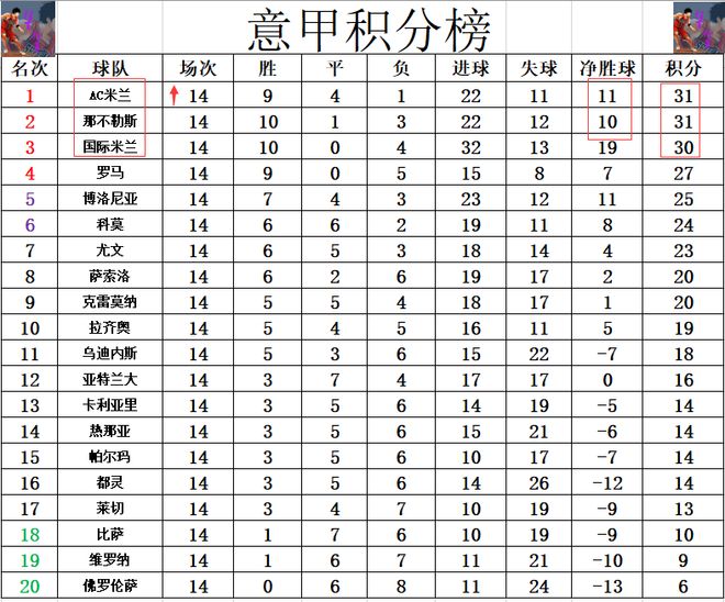 积分榜方面,AC米兰逆转绝杀都灵后夺取3连胜,这3场比赛他们都是1球小胜,这样的话他们再超过国米1分,还是凭借1个净胜球优势力压那不勒斯再次登顶。前三分差在1分之间,意甲还是五大联赛榜首争夺最激烈的。
